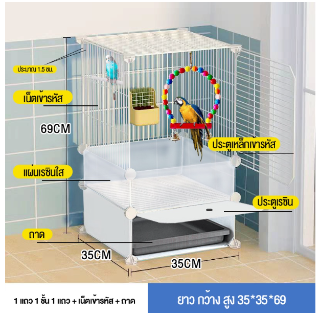 PM227-กรงสัตว์เลี้ยงขนาดเล็กพร้อมถาด กรงนกแก้ว นกพิราบ กระต่าย หนูแฮมสเตอร